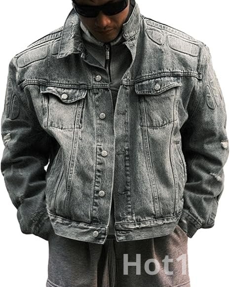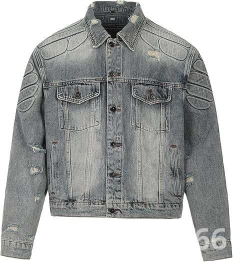 · Oversize denim trucker jacket, lapel collar, single breasted buttons closure, and the long sleeve jean jacket has two Button Flap Chest pockets.All design make this distressed denim jacket more fashion.