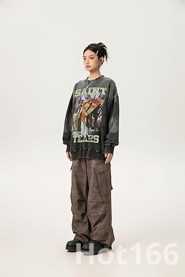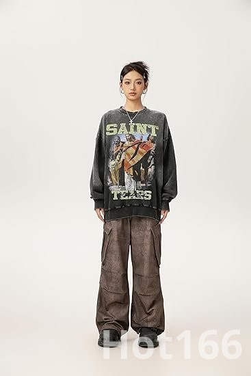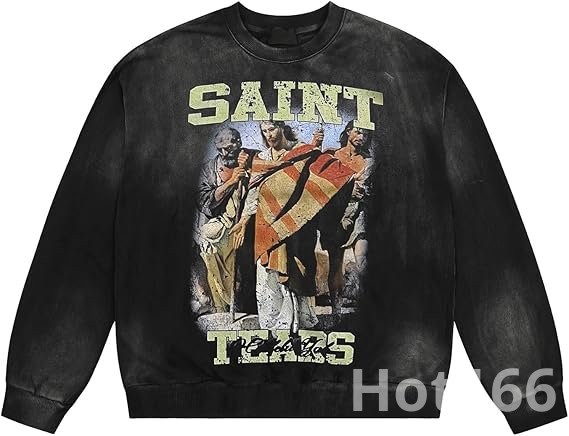 Saint Tears Men Graphic Sweatshirts Vintage Printing Sweatshirt Cotton Loose Crewneck Hoodies Pullover